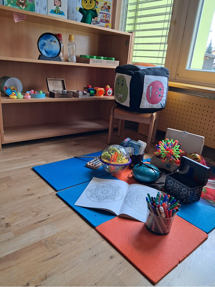 Once completed, the box is placed in a quiet calming corner or area dedicated to social and emotional learning, where children can use it whenever they need to relax or regain focus.