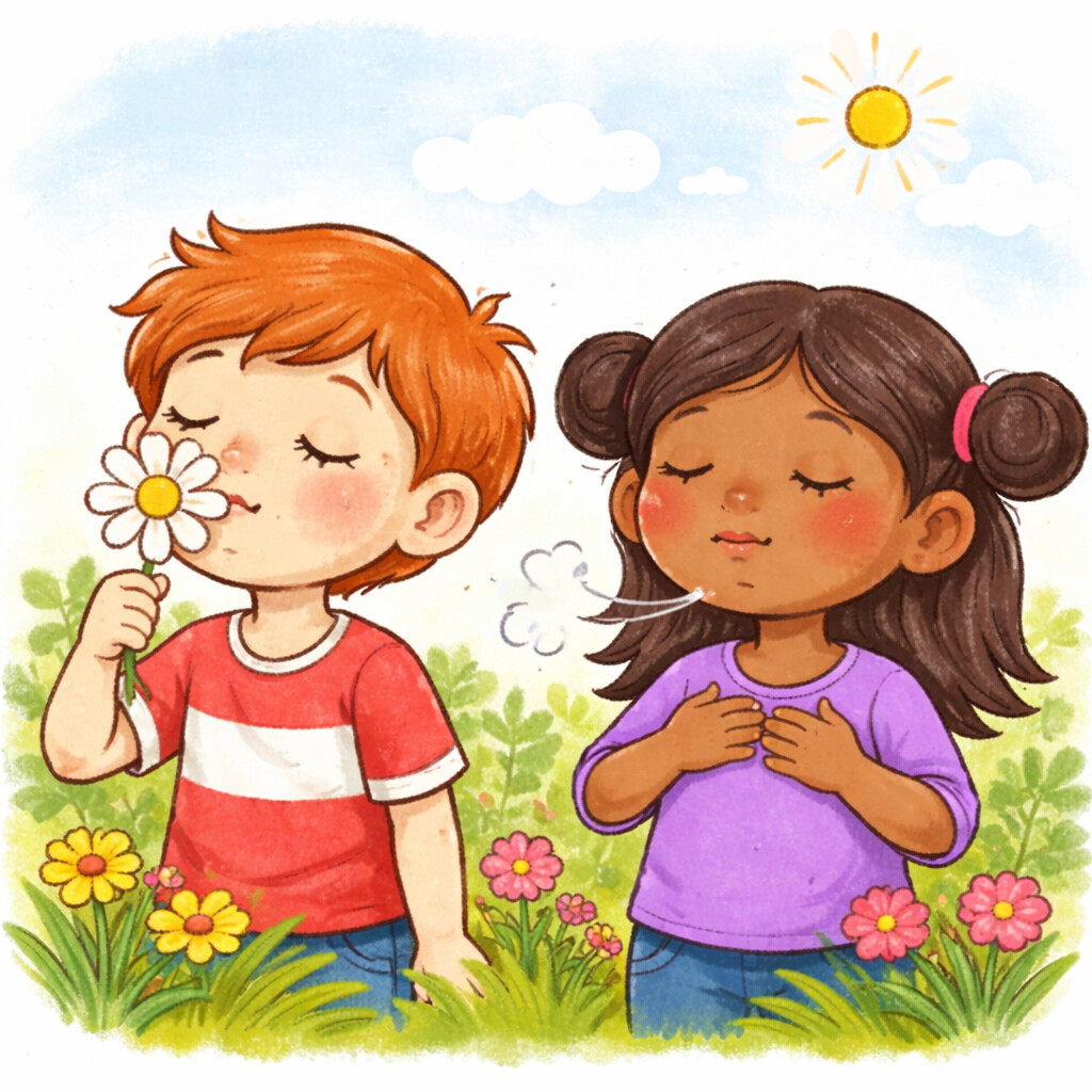 Children take time to explore and experiment with the sensory items. The teacher guides them to notice how different materials, textures, scents, or visuals make them feel calm, curious, or happy.