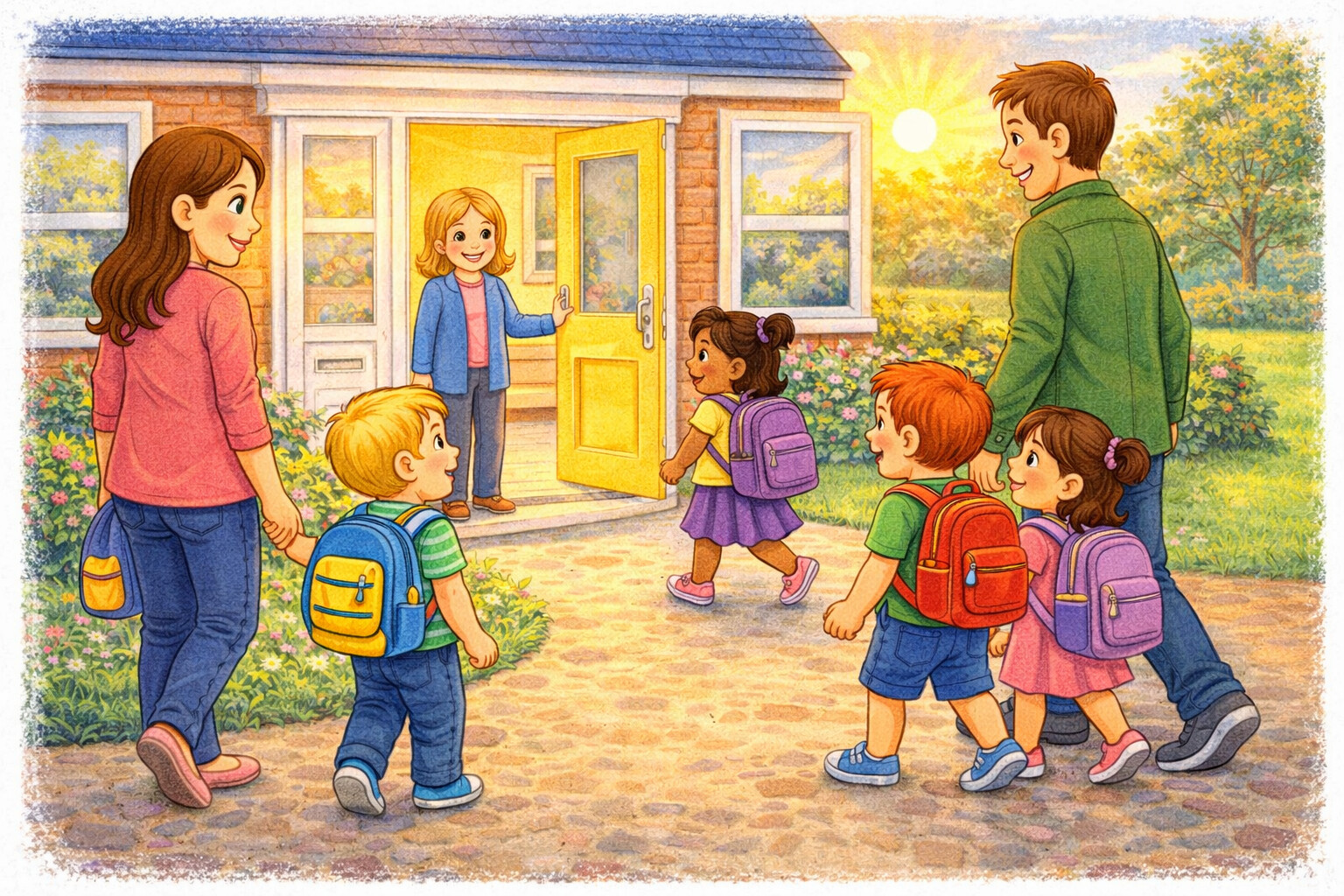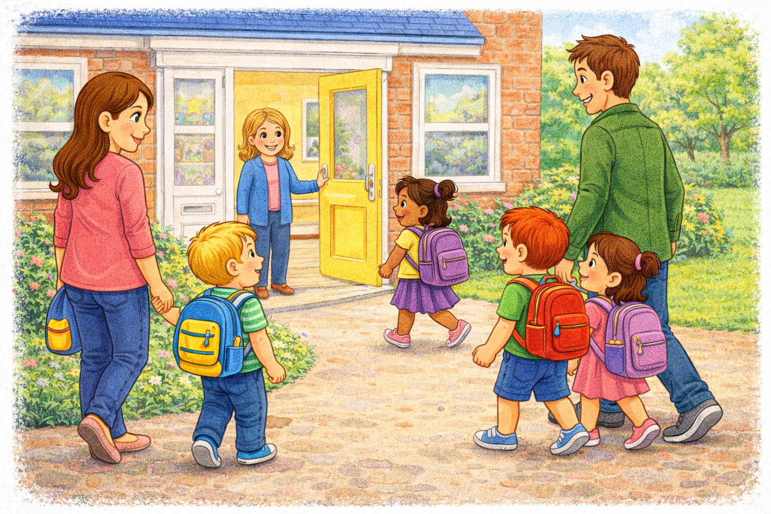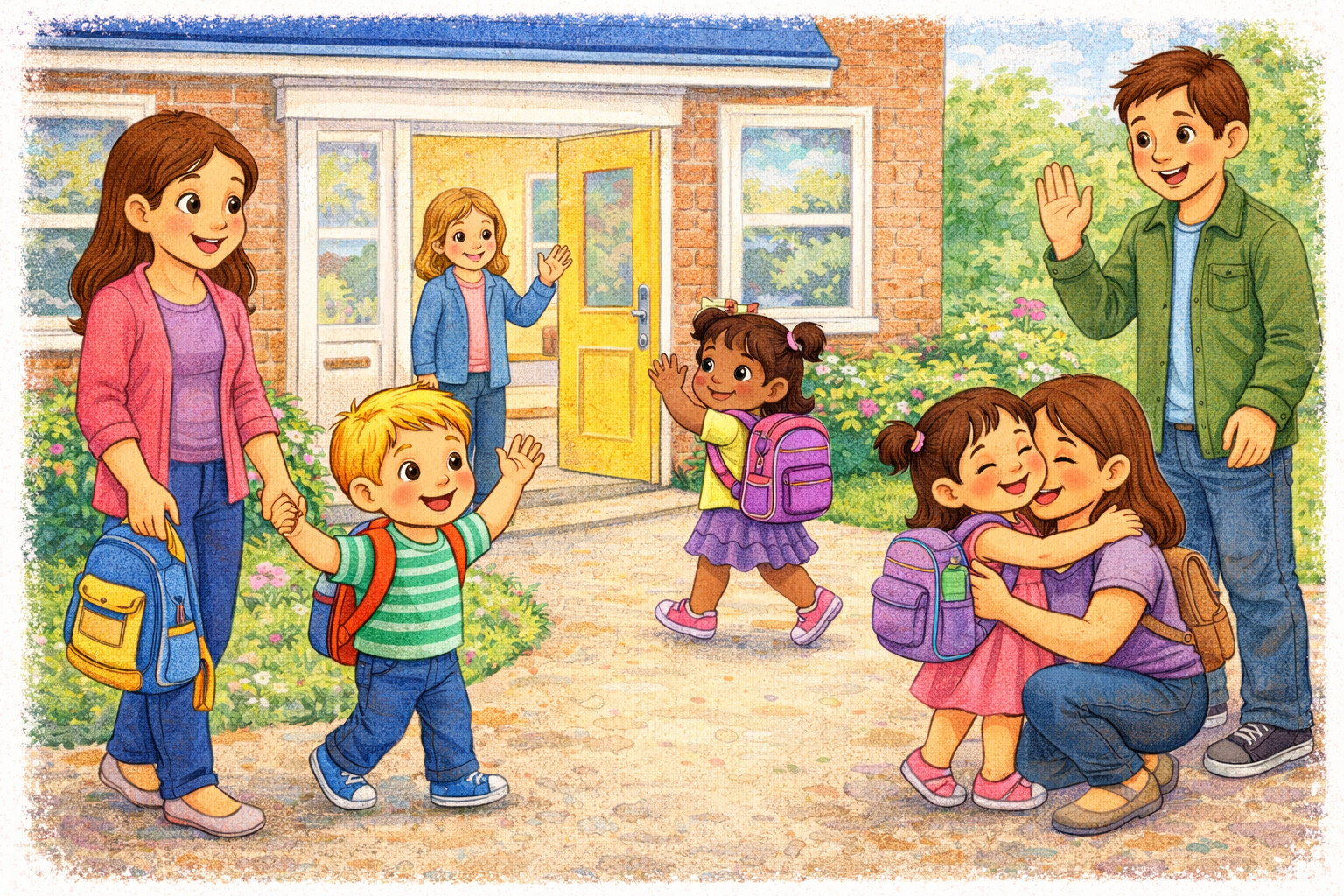 • A warm welcome: from a teacher or friend upon arriving at kindergarten.