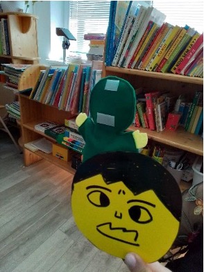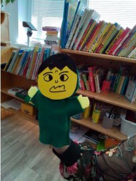 Prepare one hand puppet for each child in the group, plus one for yourself to use as an example during the activity. Instead of sewing: take a washcloth, cut holes at the side for fingers,or use a piece of fabric, stuff the head and seal the knot with a thread.